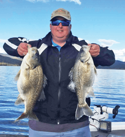 Somerset Fishing Tackle customer Craig with a couple of big bass he recently caught on paddle-tail plastics and tailspinners.