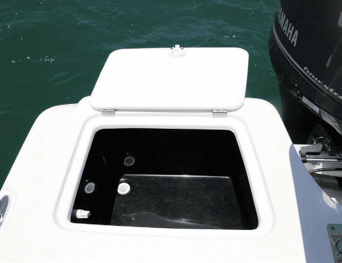 This also allows the kill tank or storage bin to be placed at the rear, which makes more sense as it is closer to the stern and keeps the water further away from the cabin area.