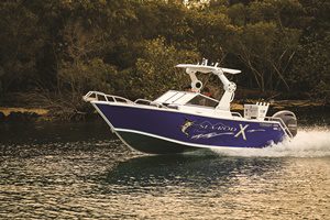 Not conforming to one single design philosophy, the X Bowrider stands out from the pack with sharp lines above the gunwales and a look somewhere between a bowrider, centre cabin and runabout. I had hotly anticipated taking this boat for a spin, so was delighted to recently sample the Sea-Rod 580 Classic version of the X Bowrider on the Tweed River.