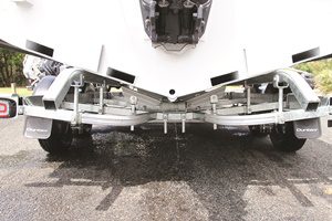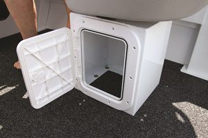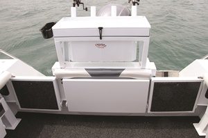 This boat also utilised the Sea-Rod exclusive Active Transom, fitted here in ‘Dual Access’ form that allowed entry and egress at the stern either side of the bait board thanks to sturdy fold-down doors covered in a non-slip coating.