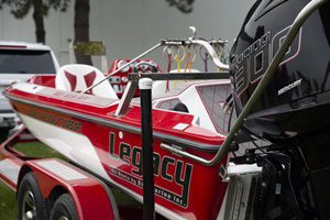 A pair of tandem boats pulled the skiers from the dock area, but the lead boat released when they reached open water and the record run was accomplished behind a single boat. The outboards were equipped with Mercury four-blade 15” Revolution propellers.