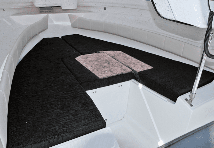The third tier contained the switches and marine radio which were easily accessible. As for standing room, there was ample for me and I’m relatively tall. There was good vision from the driving position and easy access to the back area through a good sized opening. A very large hatch allows effortless entry to the anchor well, which in my opinion makes it easy to use.