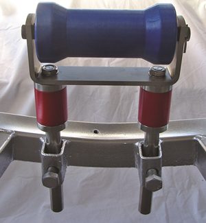 As a fishing guide, I’ve had some issues with my boat rollers banging and wearing into my hull, so I was more than a little interested to see how the fisho got his setup so quiet. I walked over and while chatting with Dave Penn from the mid north coast of NSW about chasing big fish in far-off destinations, I noticed his boat roller brackets and skids. They were fitted with what looked like small stainless steel and polyurethane shock absorbers.